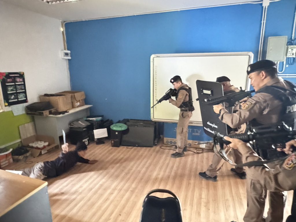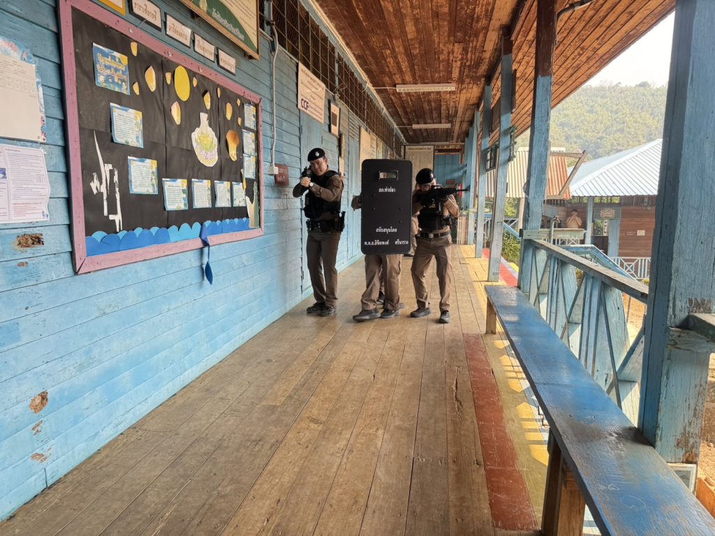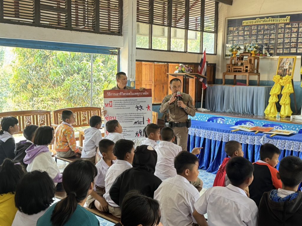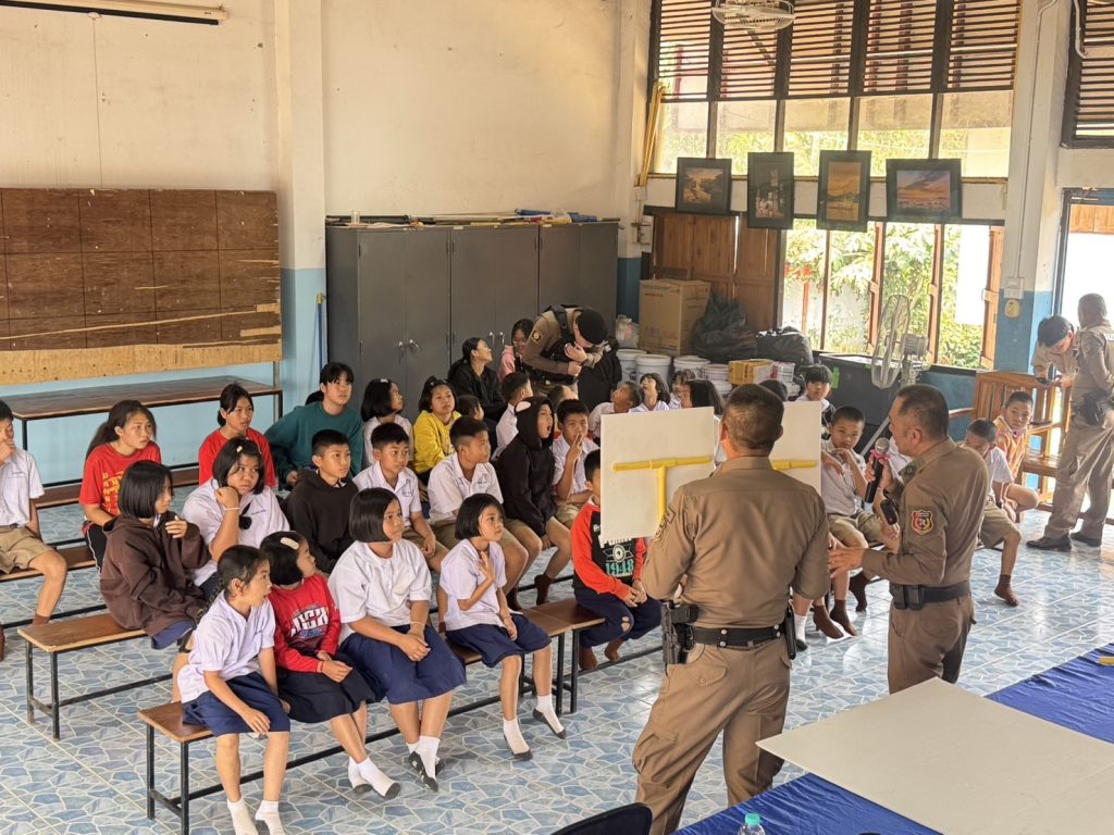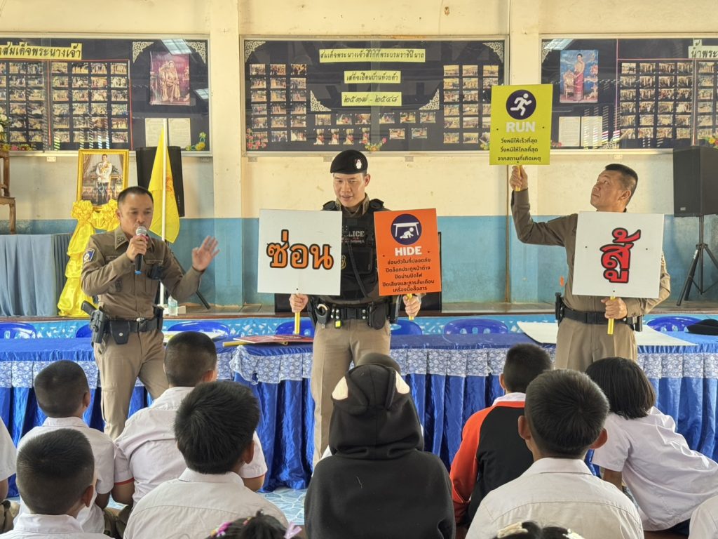 พร้อมด้วย ชุดชุมชนสัมพันธ์ และชุดปฏิบัติการ Active Shooter สภ.ท่าปลา ได้ให้ความรู้วิธีเอาตัวรอด การป้องกันตนเอง จำลองสถานการณ์ วิธีเอาตัวรอด เมื่อตกอยู่ในสถานการณ์ที่คับขันภายใต้โครงการ “หนี ซ่อน สู้” พร้อมให้ความรู้กฎหมายจราจรเบื้องต้นและยาเสพติด ณ โรงเรียนห้วยต้าวิทยา ต.นางพญา อ.ท่าปลา จ.อุตรดิตถ์