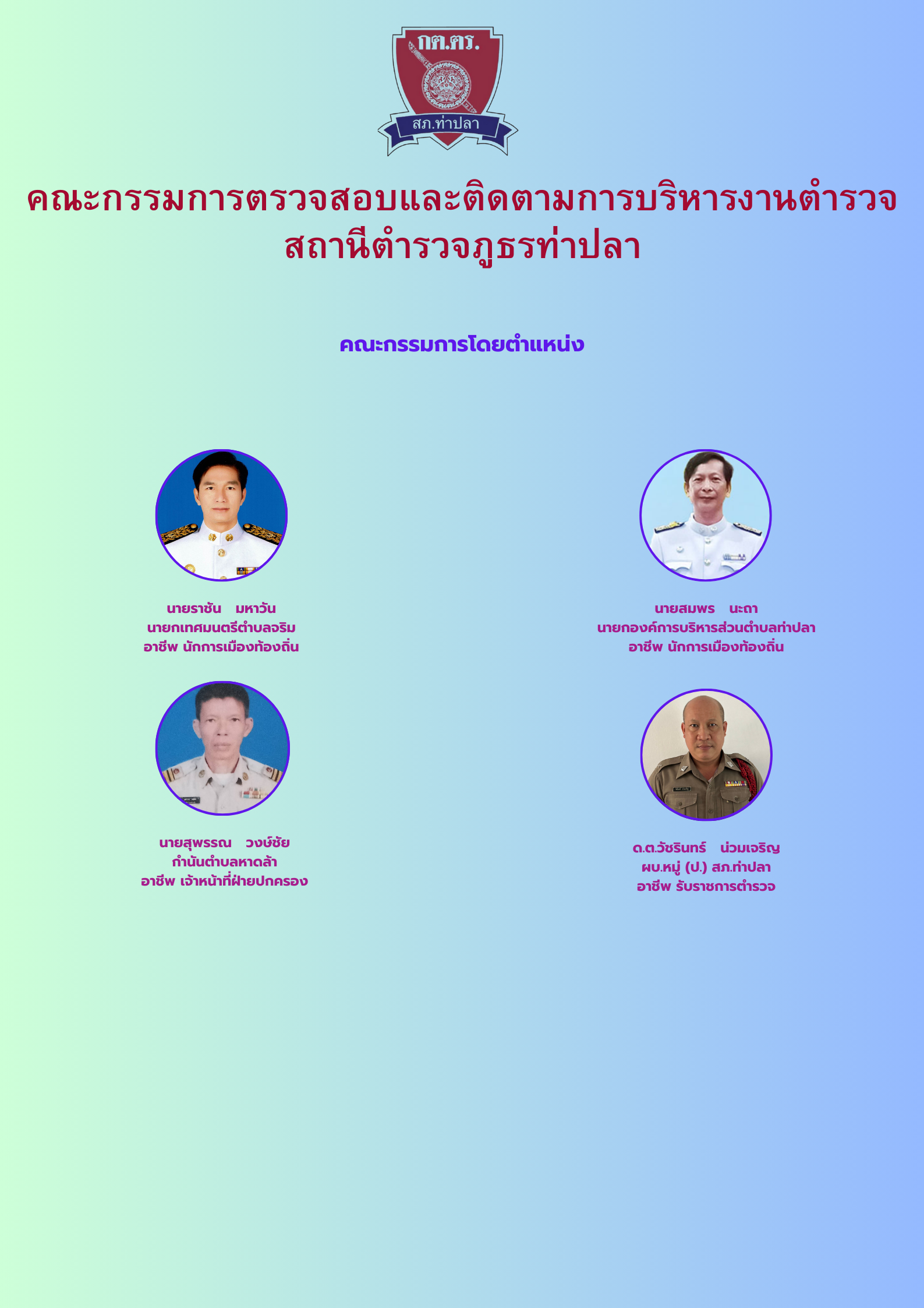 คำสั่งแต่งตั้งตั้งคณะกรรมการตรวจสอบและติดตามการบริหารงานตำรวจ (กต.ตร.) ของสถานีตำรวจภูธรท่าปลา