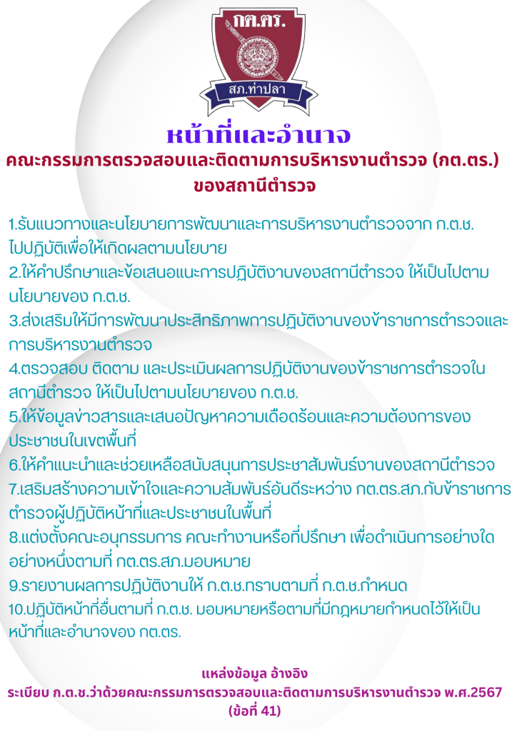 - บทบาท อำนาจหน้าที่คณะกรรมการตรวจสอบและติดตามการบริหารงานตำรวจ (กต.ตร.) ของสถานีตำรวจภูธรท่าปลา